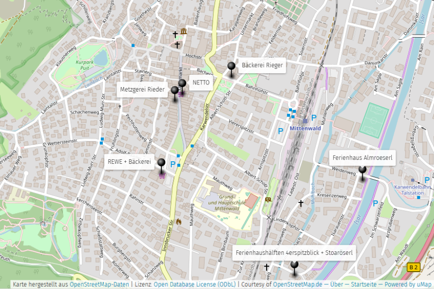 Sie haben es wahrscheinlich schon oft gelesen - zentral und ruhig gelegen. Lassen Sie sich überzeugen, das dieses für unsere Unterkünfte zutrifft: Sie liegen nicht direkt im Zentrum Mittenwalds, dieses ist aber dennoch innerhalb eines gemütlichen 15-minütigen Spaziergangs schnell erreichbar.