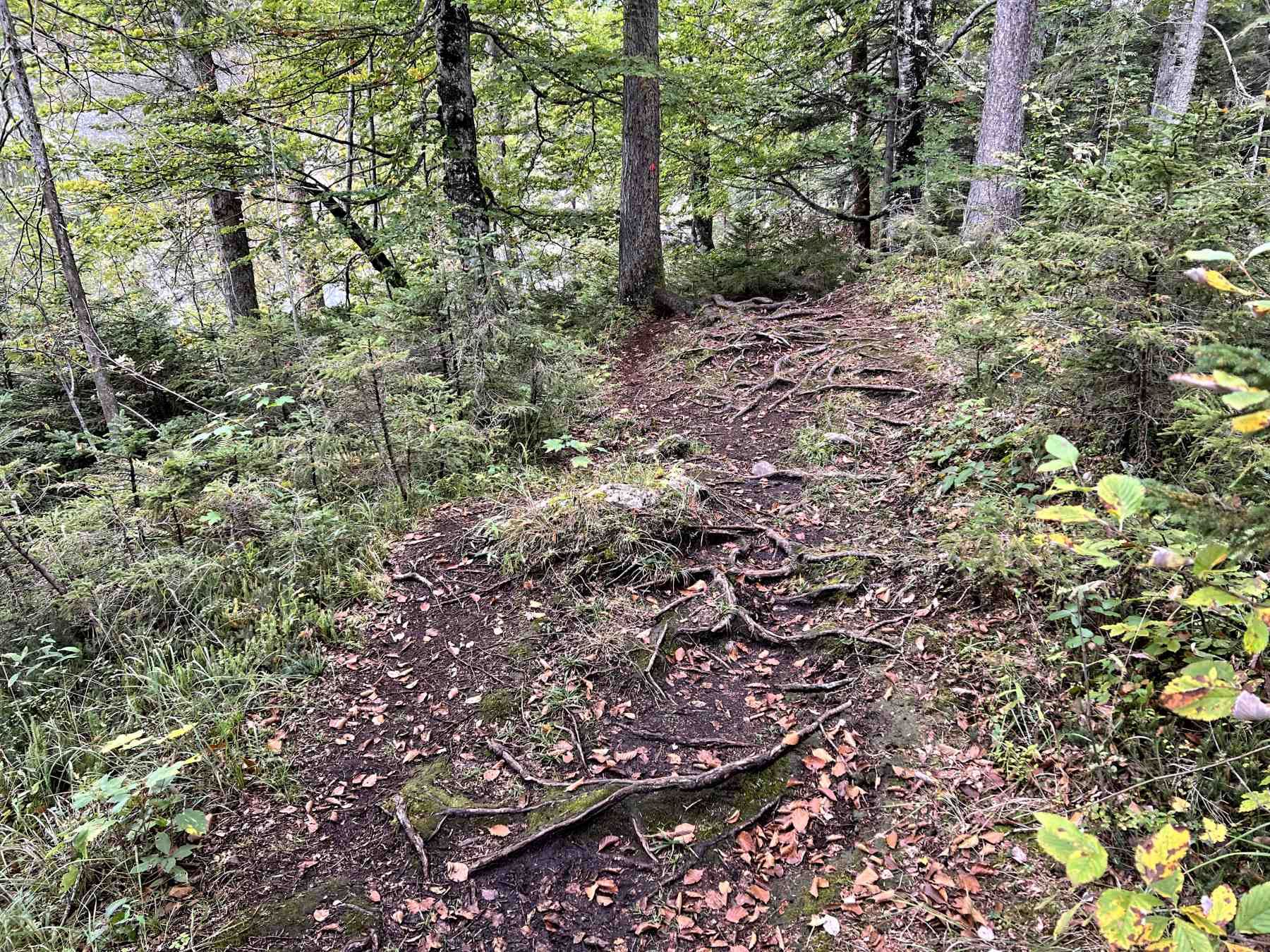 Der Weg durch die Finzbachklamm kann bei Nässe, insbesondere nach Regen, teils matschig sein und durch das viele Wurzelwerk rutschig sein. Alternativ können wir auf dem Forstweg verbleiben und auf dem Weg 450 nach Krün wandern oder auf den Weg 415 nach Wallgau (Bushaltestelle Rathaus) abzweigen.