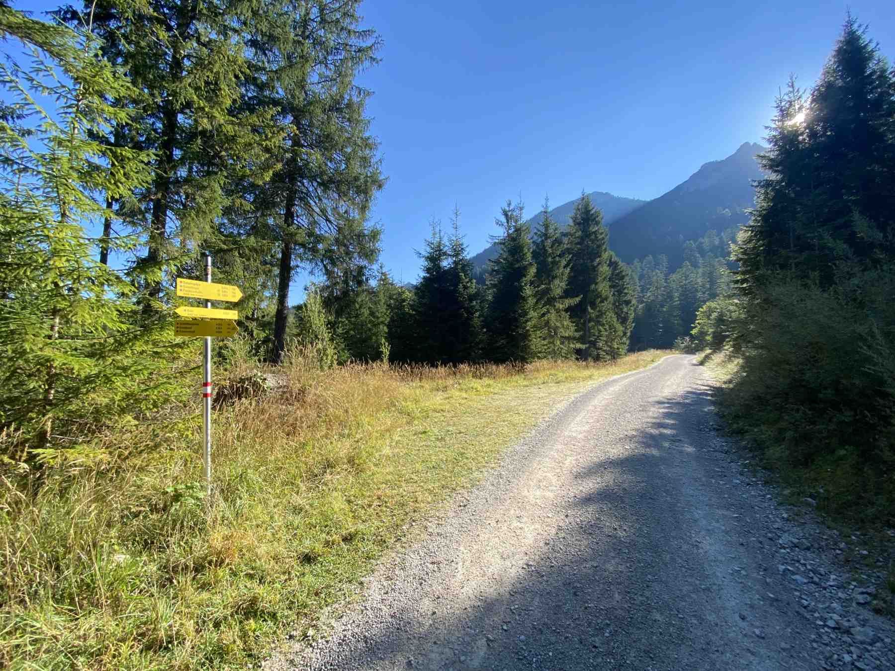 Dieser Weg führt zunächst steil serpentinenartig talwärts. Ab der Materialseilbahn geht der Pfad in einen breiten Wirtschaftsweg über. Ab Talgrund erfolgt noch ein kurzer Anstieg bis zur Fischbachalm. Vor dort aus führt uns der selbe Weg wie auf dem Hinweg zurück nach Krün.