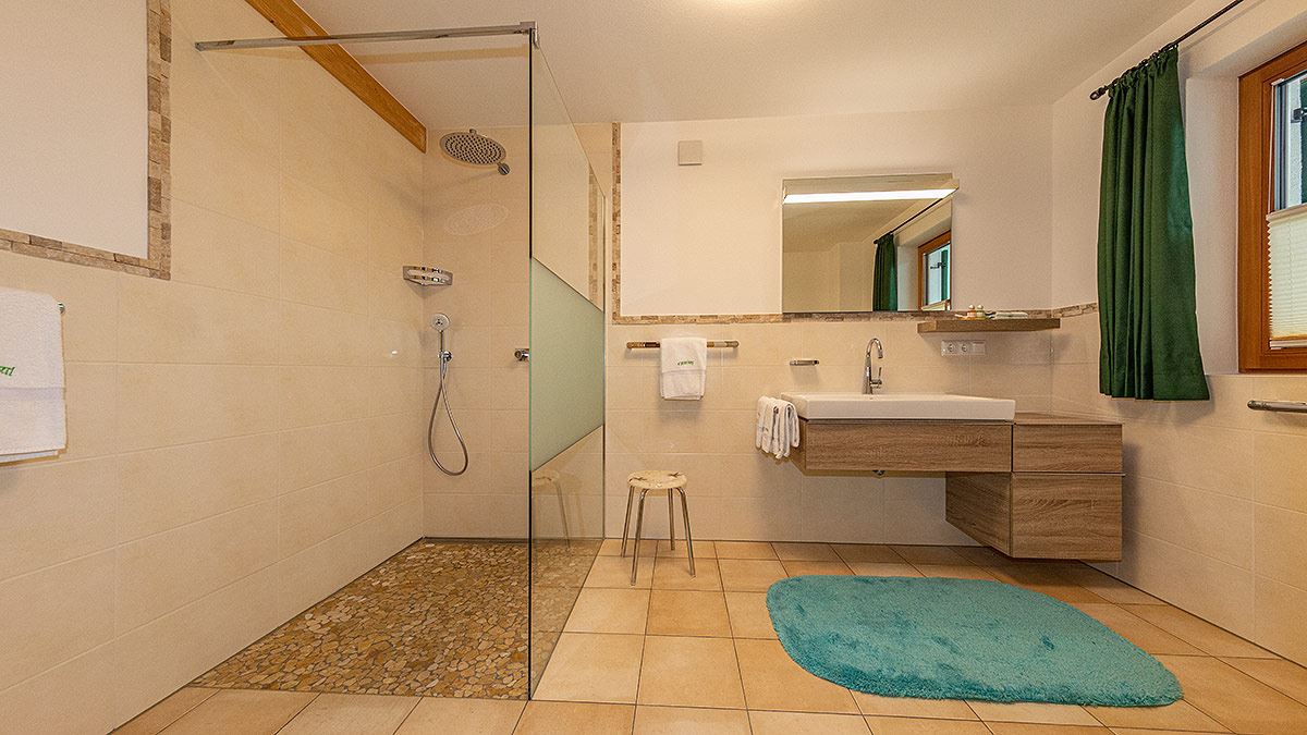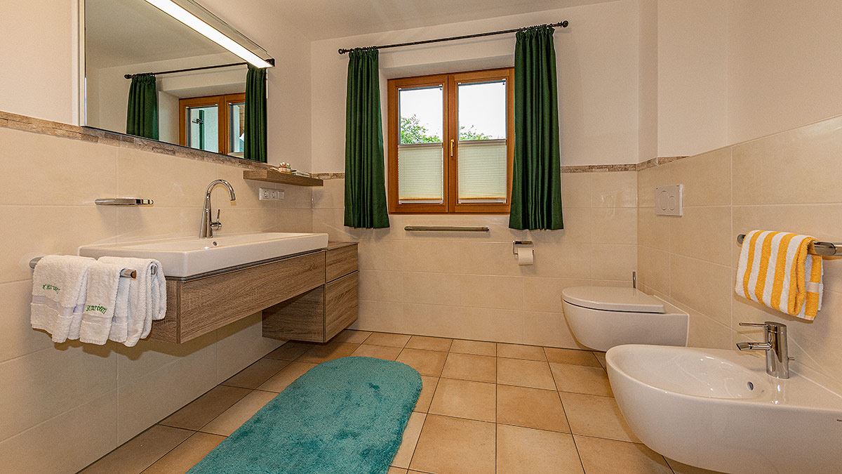 Das großzügige Dusch-Badezimmer verfügt über einen Waschtisch, Dusche, WC, Bidet, Fön und Handtuchwärmekörper. Dusch- und Handtücher stellen wir Ihnen zur Verfügung.
