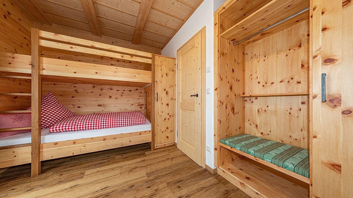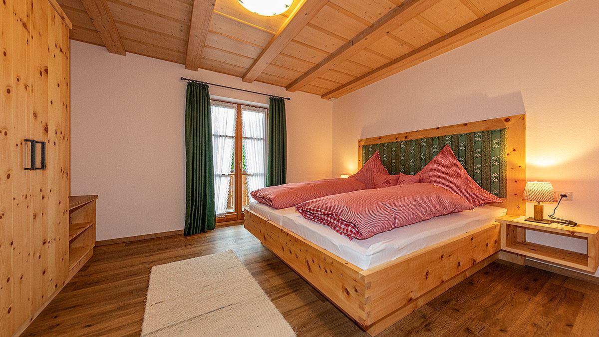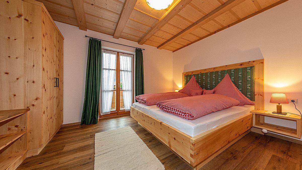 Zwei Schlafzimmer sind mit Doppelbetten und ein Schlafzimmer mit zwei Einzelbetten (jeweils aus Zirbenholz) eingerichtet, davon ist ein Schlafzimmer mit SAT-TV ausgestattet. Die Bettwäsche ist im Preis inbegriffen und bei Ihrer Anreise sind die Betten frisch bezogen.