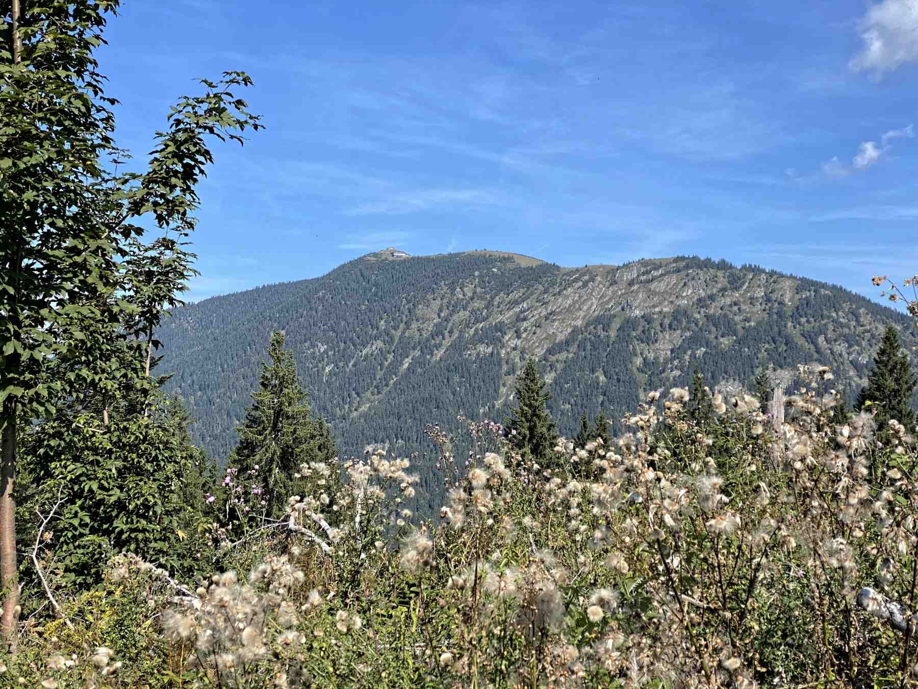 Zunächst verläuft der Weg schattig in Wald, dann teils über Lichtungen mit schönen Aussichten. Im weiteren Verlauf erreichen wir eine Forststraße von der es nicht mehr allzu weit bis zur bewirtschafteten Elmauer Alm ist.