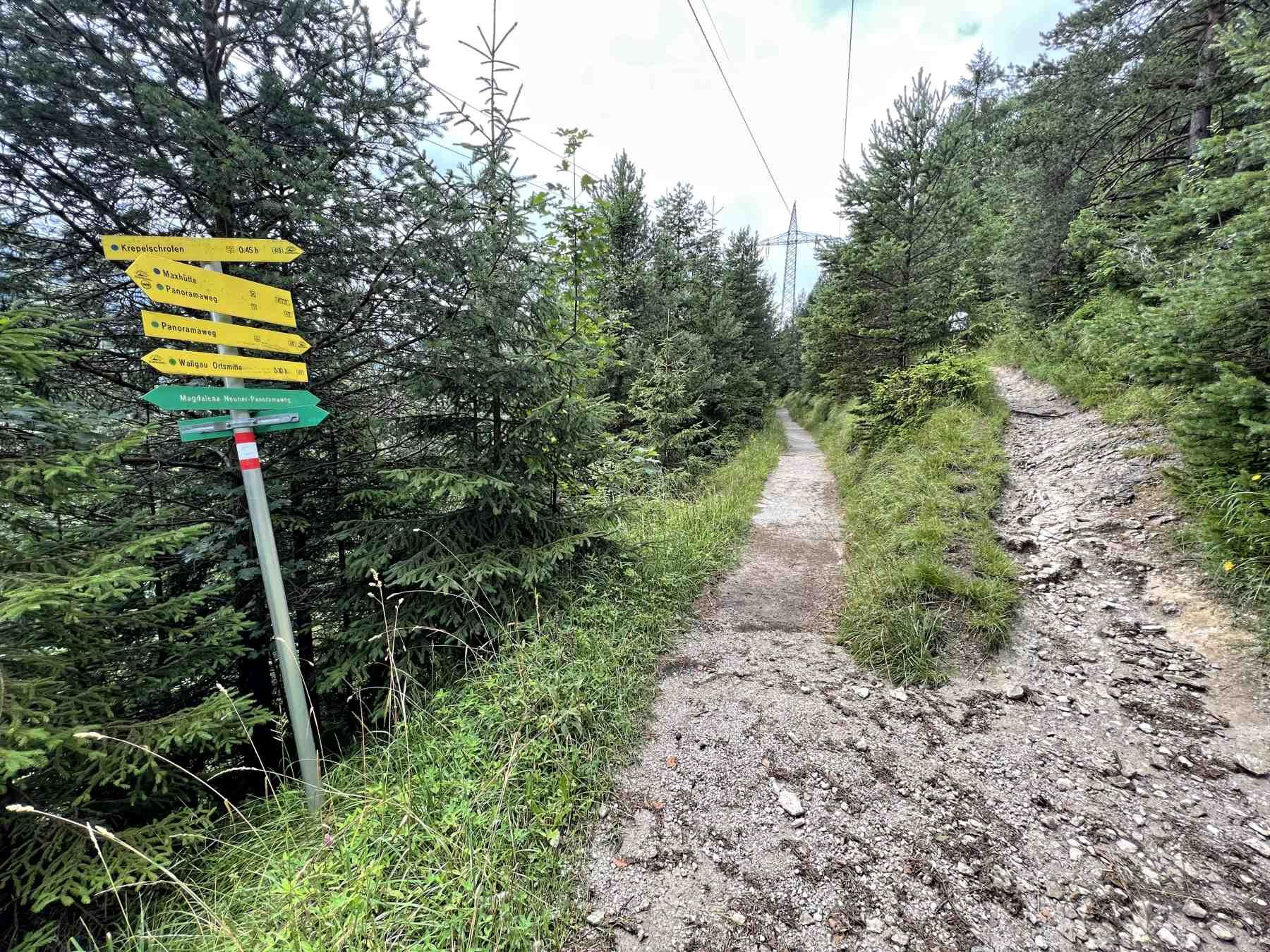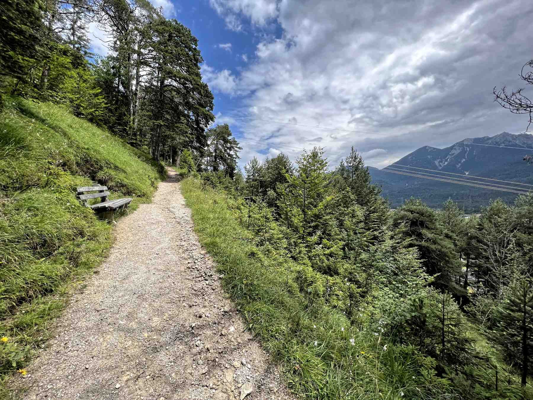 Auf gleichem Weg gehen wir talwärts zurück zum Magdalena-Neuner-Panorama Weg der uns zum Ortzentrum Wallgau führt.