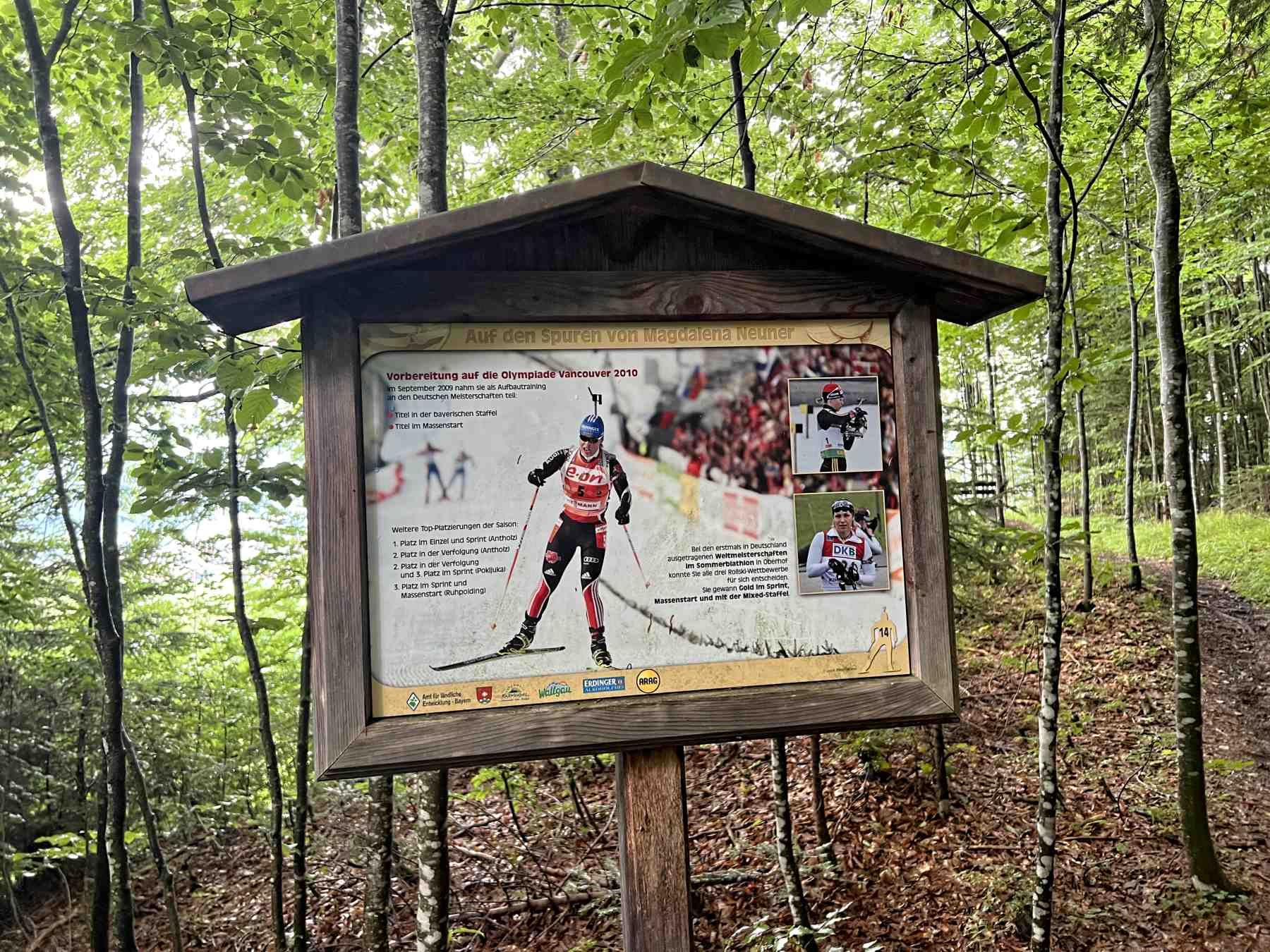 An dem Panoramaweg stehen Schautafeln, die die Bilderbuch-Karriere von Magdalena Neuner aufzeigen.