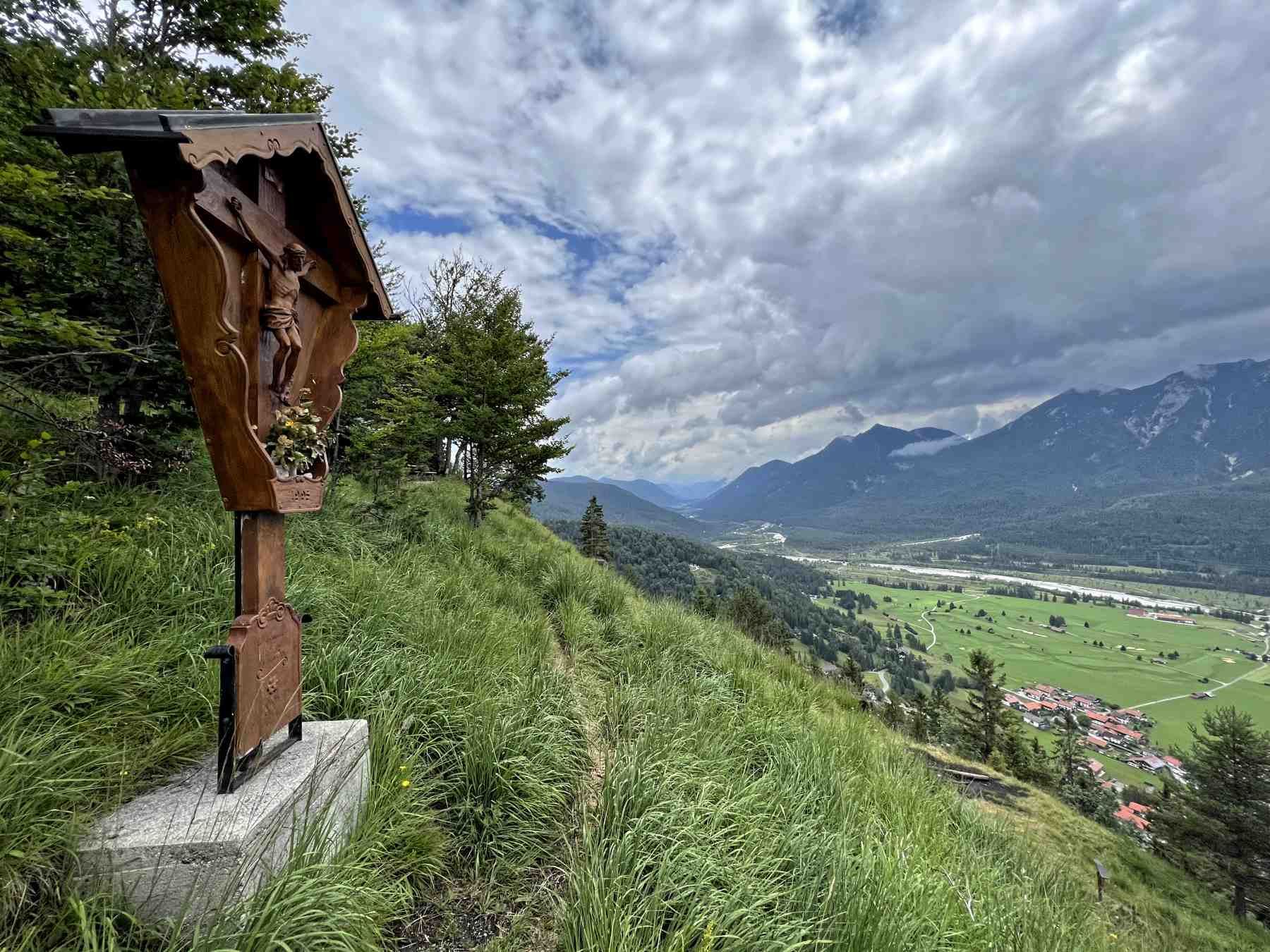 Eine leichte Wanderung auf den 1.160 m hohen Krepelschrofen. Dieser liegt oberhalb von Wallgau ist einer der schönsten Aussichtspunkte auf das Isartal in der Alpenwelt Karwendel.
