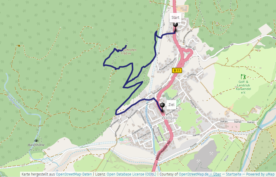 Ausgangspunkt für diese Tour ist die RVO Bushaltestelle Bichl, Wallgau.