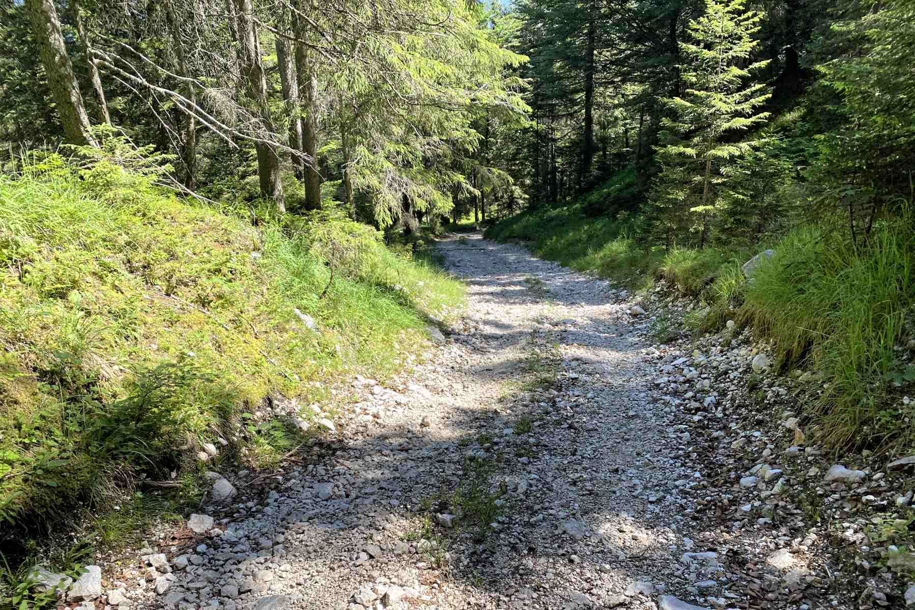 Vom Ferchensee aus führt zu nächst ein breiter Schotterweg in westliche Richtung. Es folgen zwei Abzweige nach Rechts in Richtung Ellmau und dabei verlassen wir den Weg 820 und folgen den Weg 870 Richtung Wetterstein Alm / Schachen.