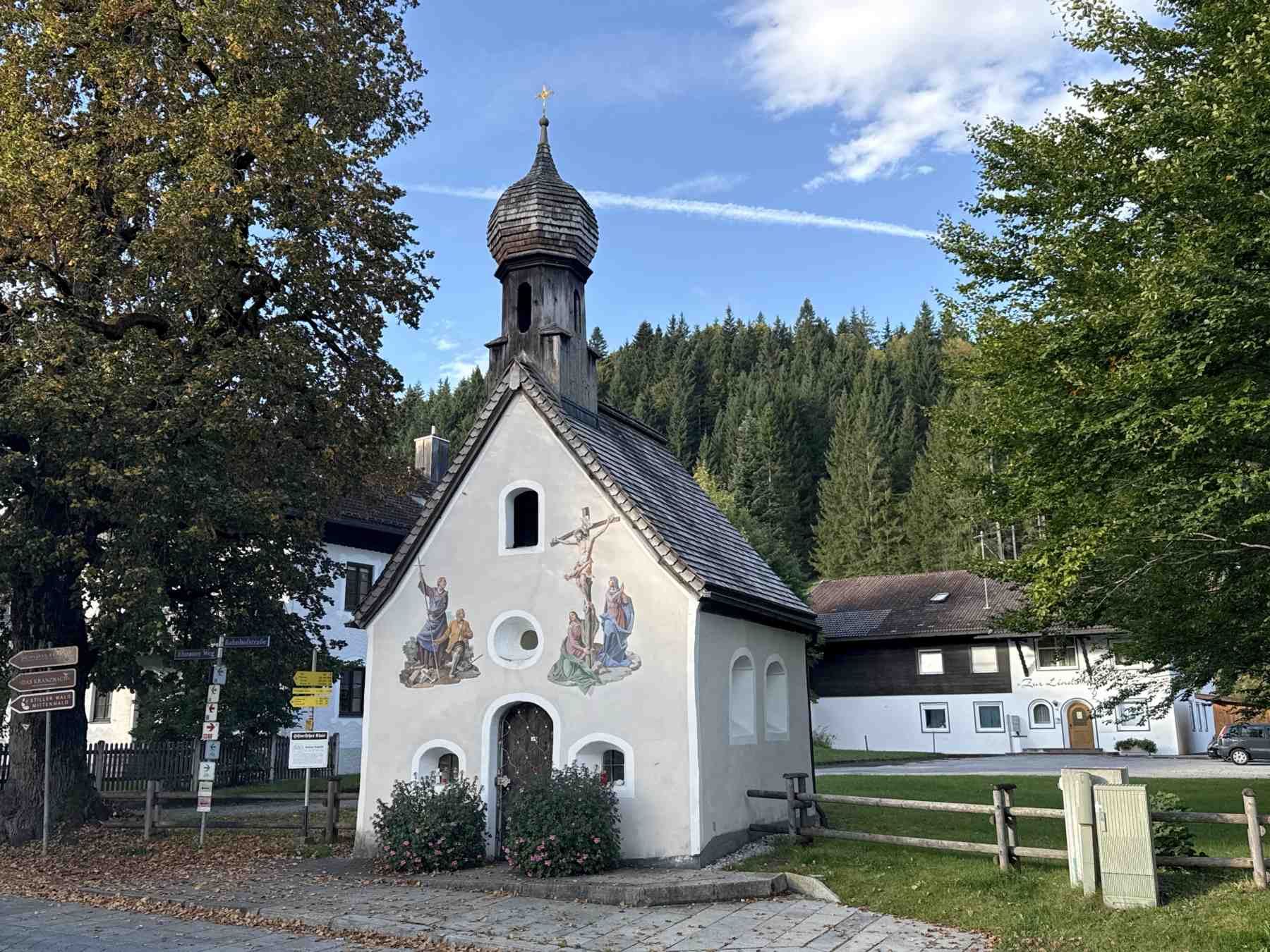 Diese Runde beginnen wir am Bahnhof in Klais. Wir gehen in Richtung der Klaiser Kapelle und dann nach links in die Bahnhofsstraße. Hinter dem Kranzbach biegen wir rechts in Richtung Römerweg ab.