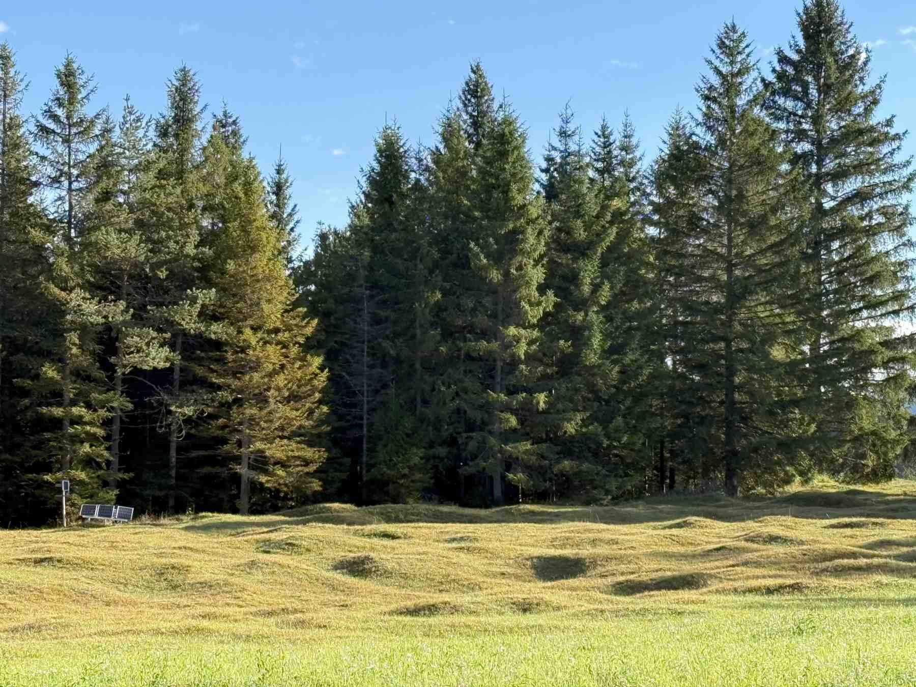 Nach 15 min zweigen wir nach rechts zum Tennsee ab. Je nach Jahreszeit und Niederschlagemenge kann es sein, das der See lediglich eine "Wiese" ist. Vom Campingplatz wandern wir nun in Richtung Barmsee Ort, unterqueren die B2 und am Parkplatz biegen wir links auf den Wirtschaftsweg.