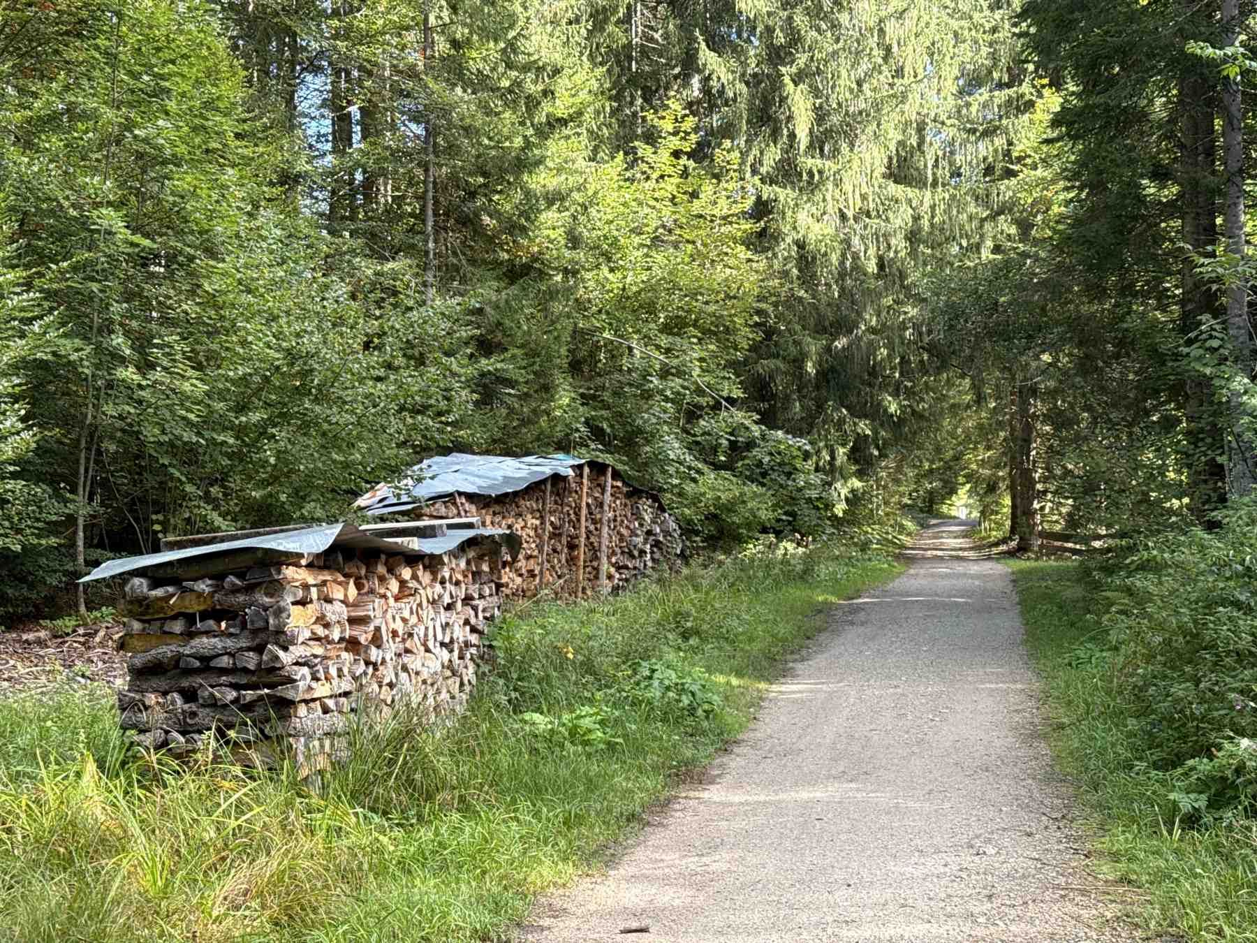 Wir wandern weiter auf dem Rundweg und biegen rechts in den Wald ab. An der Straße angekommen orientieren wir uns in Richtung Bärnbichl. Von dort gehen wir links auf der Wettersteinstraße direkt zur Bushaltestelle in Krün.